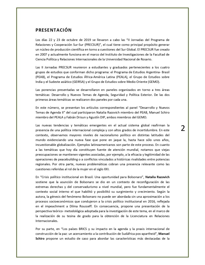 “Argentina y Brasil: Proyecciones Internacionales, Cooperación Sur-Sur e Integración” -Morasso, Carla & Pereyra Doval, Gisela